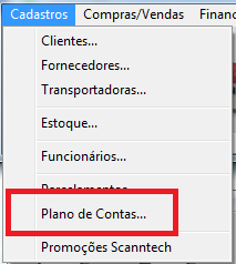 Para criação do plano de contas, acesse Cadastros – Plano de contas;